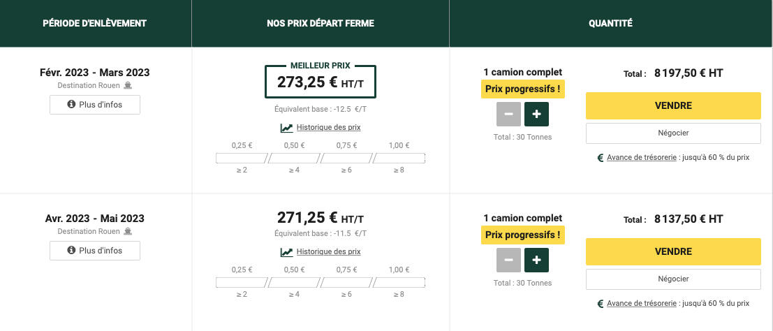 Nous payons vos céréales à 15 jours fin de livraison et si vous le souhaitez nous proposons des avances de trésorerie (60 % de votre contrat).
